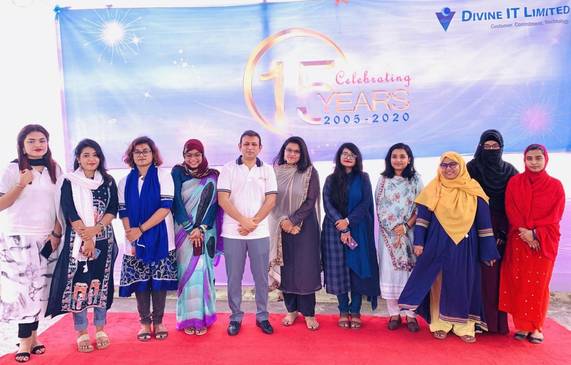 The auspicious event of Divine IT Limited was a day-long one filled with the exuberant aura of its elated and proud team members. The event was made more precious with the humble presence of top management and the board of directors. Starting from brief speech sessions from the management and directors to having scrumptiously delectable feasts to satirically recreational activities a.k.a party games, the event was filled to the brim in terms of enjoyment and satisfaction. This is merely a stepping stone to an even greater beyond. Divine IT Limited has been trailblazing its way to the pinnacle of success for 15 years and shall go on far & beyond.