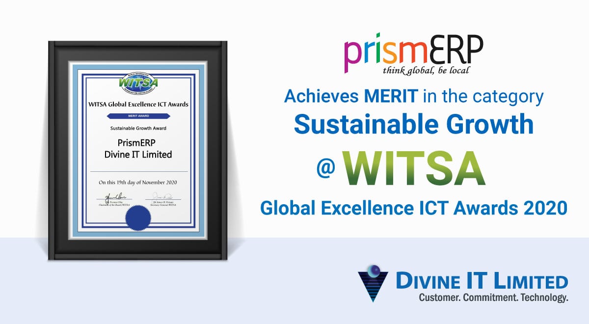 PrismERP Achieves Merit in WITSA Global Excellence ICT Awards 2020 for the category of Sustainable Growth on 19th November,2020.